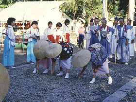 毎年、初午の日に奉納される。蜘蛛手、飛び手、十手、虚無僧、太刀打ちといった役者がそろう踊りである。地元漁師の青年が中心に踊る。